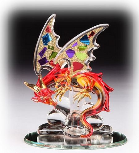 crafted glass Dragon is set on a beveled round mirror base