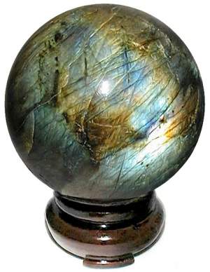 Our AA Labradorite spheres from Madagascar  have lots of fire and flash in iridescent peacock colors that catch the light!  Each sphere is hand picked for you and has a superior high shine polish with little or no rough spots which is characteristic for the average Labradorite sphere. Labradorite facilitates change in trying circumstances, plumbing the strengths of the inner self. The Fancy Rosewood Stand is sold separately.