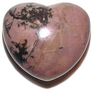 Gorgeous Rhodonite hearts have a deep pink matrix that are veined delicately in black with tree like formations of manganese oxide. Rhodonite is said to balance the yin-yang energies and assist in the attainment of one's greatest potential. Beautifully polished 45mm or 1 3/4" puffy heart gem stone.